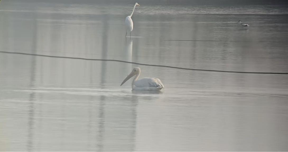 白鹈鹕作为大型珍稀涉禽,体长可达1.5米以上,双翼展开超过2米。因其对栖息地水质和生态环境极为敏感,被视为湿地健康的“指示物种”。这群白鹈鹕或在湖面悠然游弋、觅食,或隐身芦苇丛中休憩,与波光粼粼的湖面、摇曳的苇影共同绘就一幅自然和谐的生态画卷。