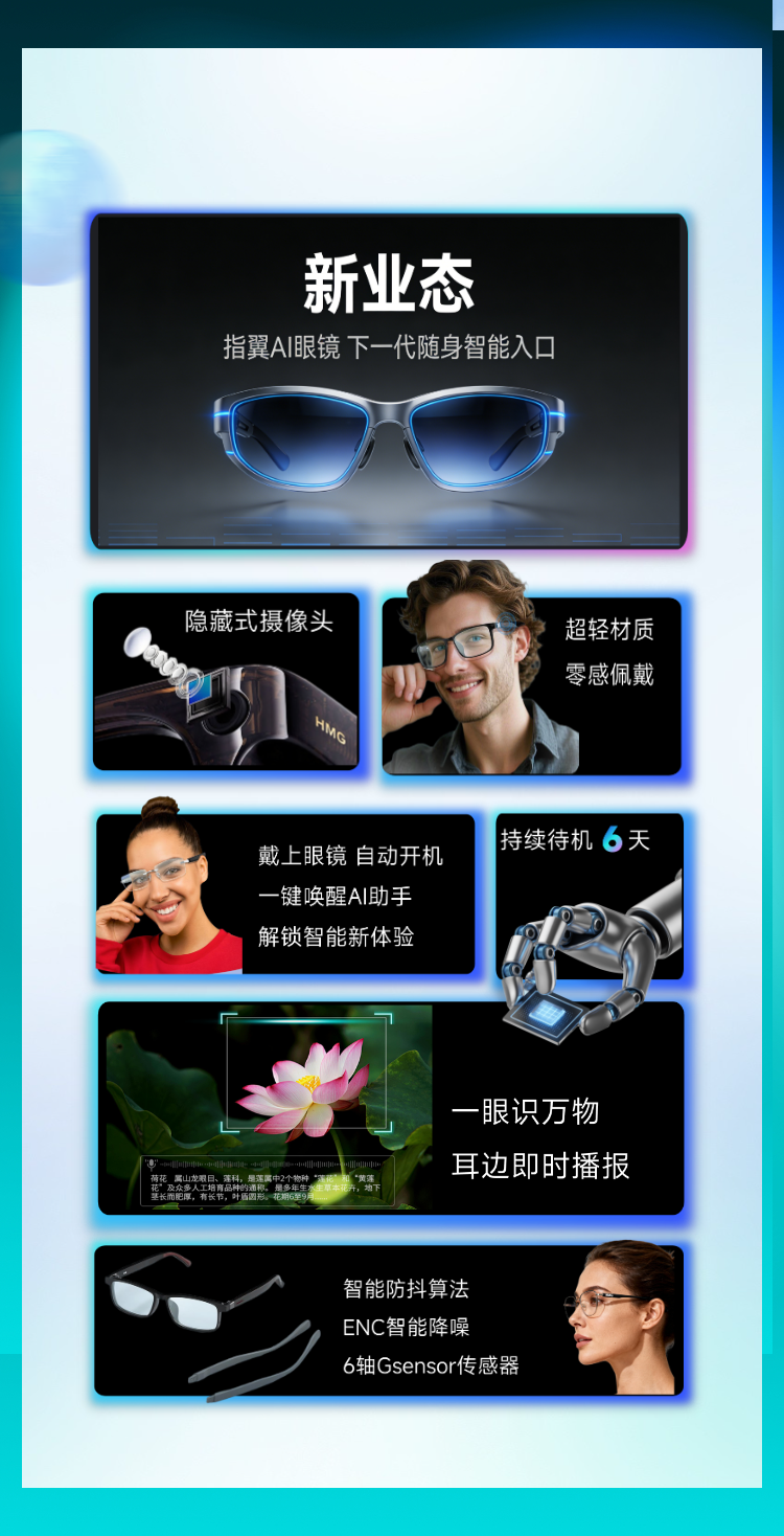 HMG指翼AI眼镜和指翼AI云感耳机
