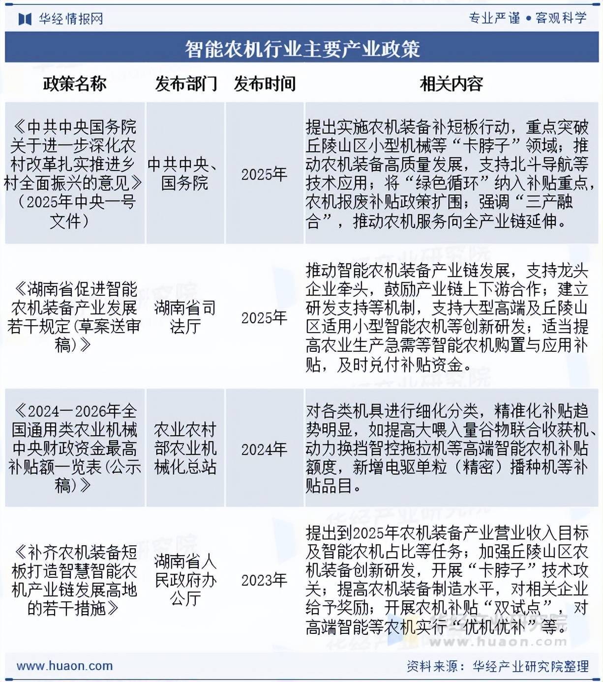 本文节选自华经产业研究院发布的《2025年中国智能农机行业现状分析及前景展望,国际化步伐进一步加快「图」》,如需获取全文内容,可进入华经情报网搜索查看。