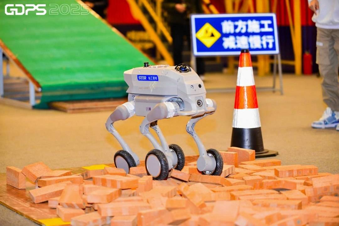 在模拟灾难救援赛区,全场目光正聚焦于最紧张的一分钟:机器人正试图正面突破近30厘米高的碎砖坍塌区。这不是靠速度能通过的考验——重心稍有偏差便可能倾覆,动力分配不均则会在碎砖上空转。